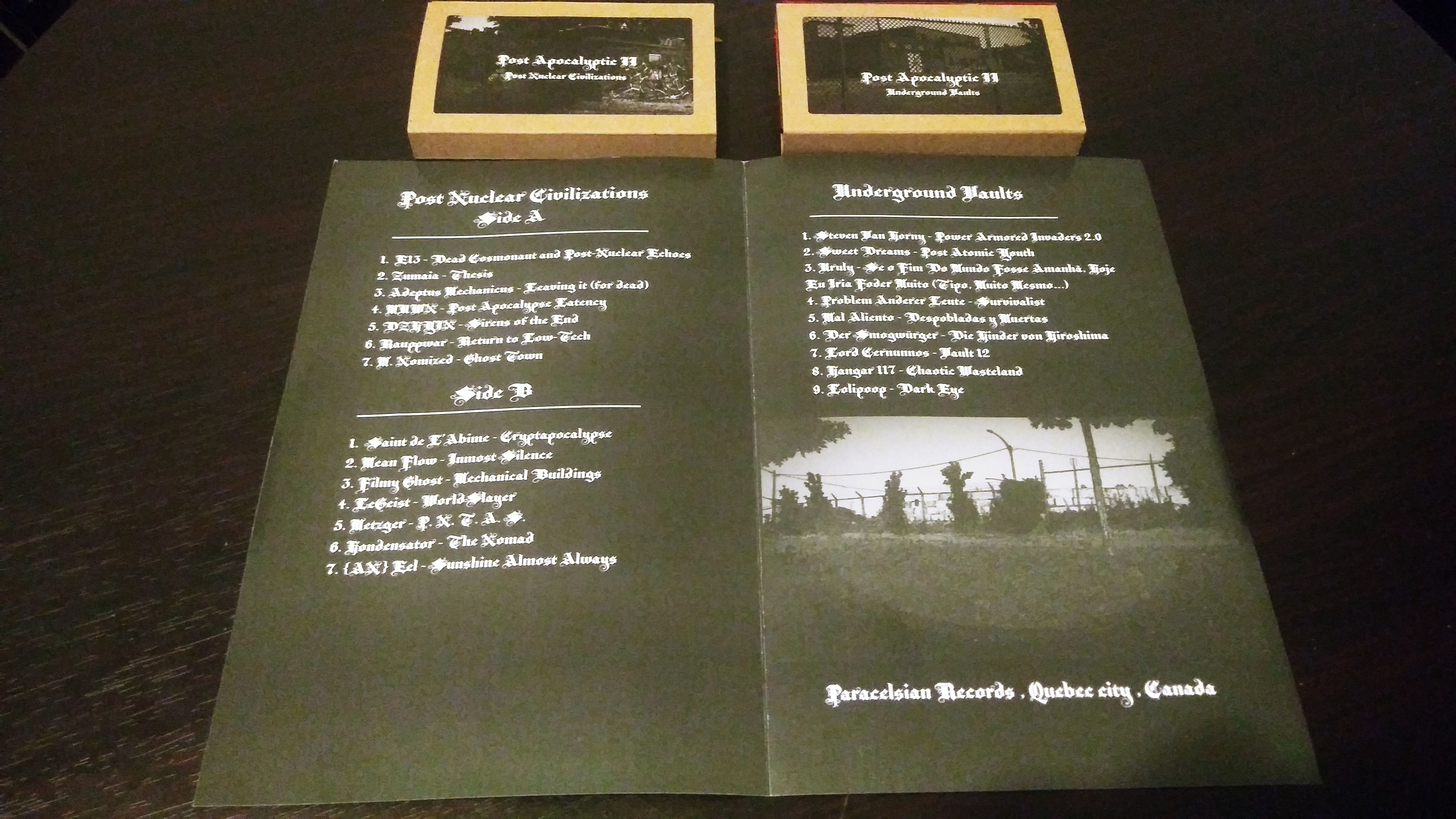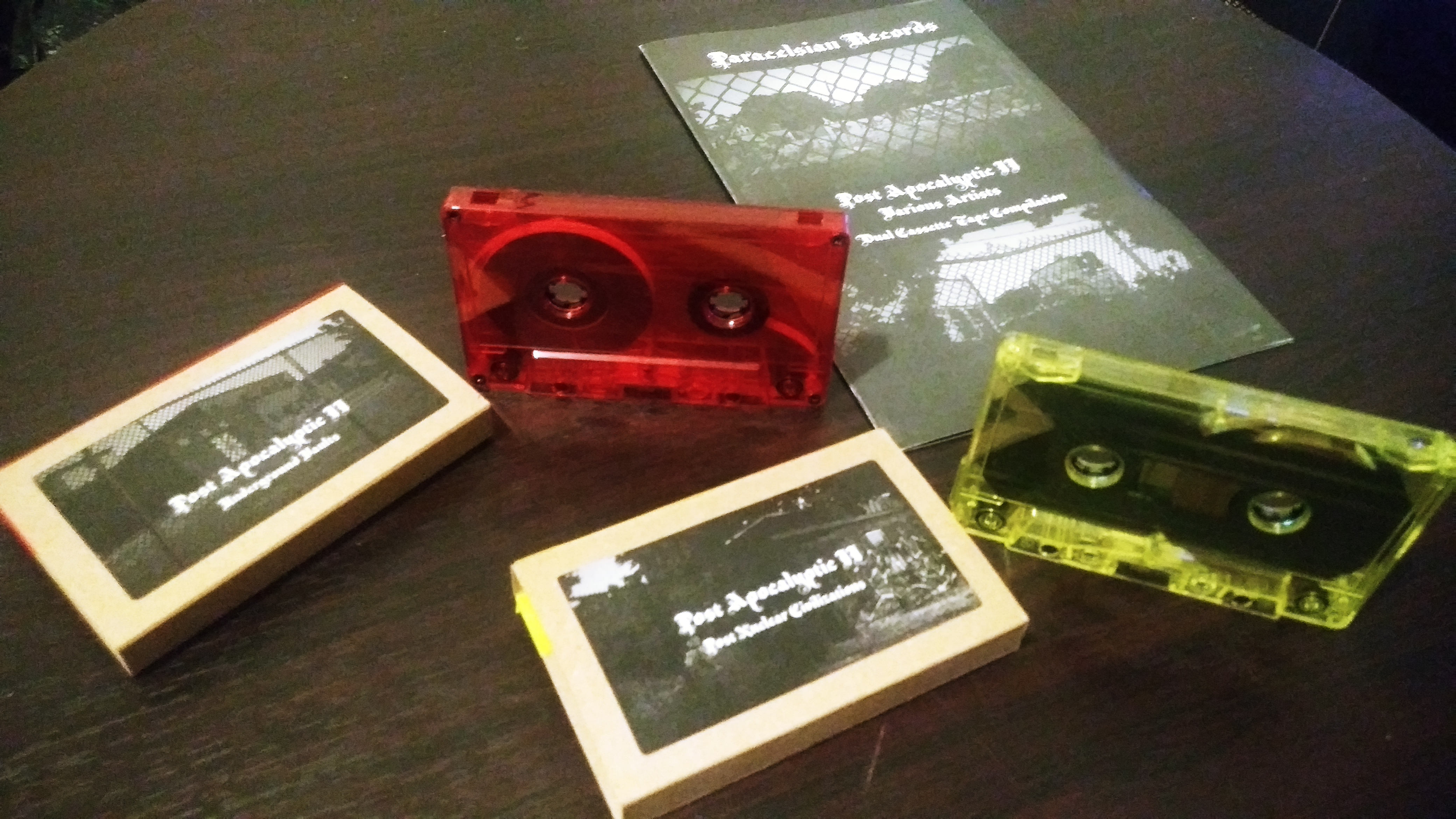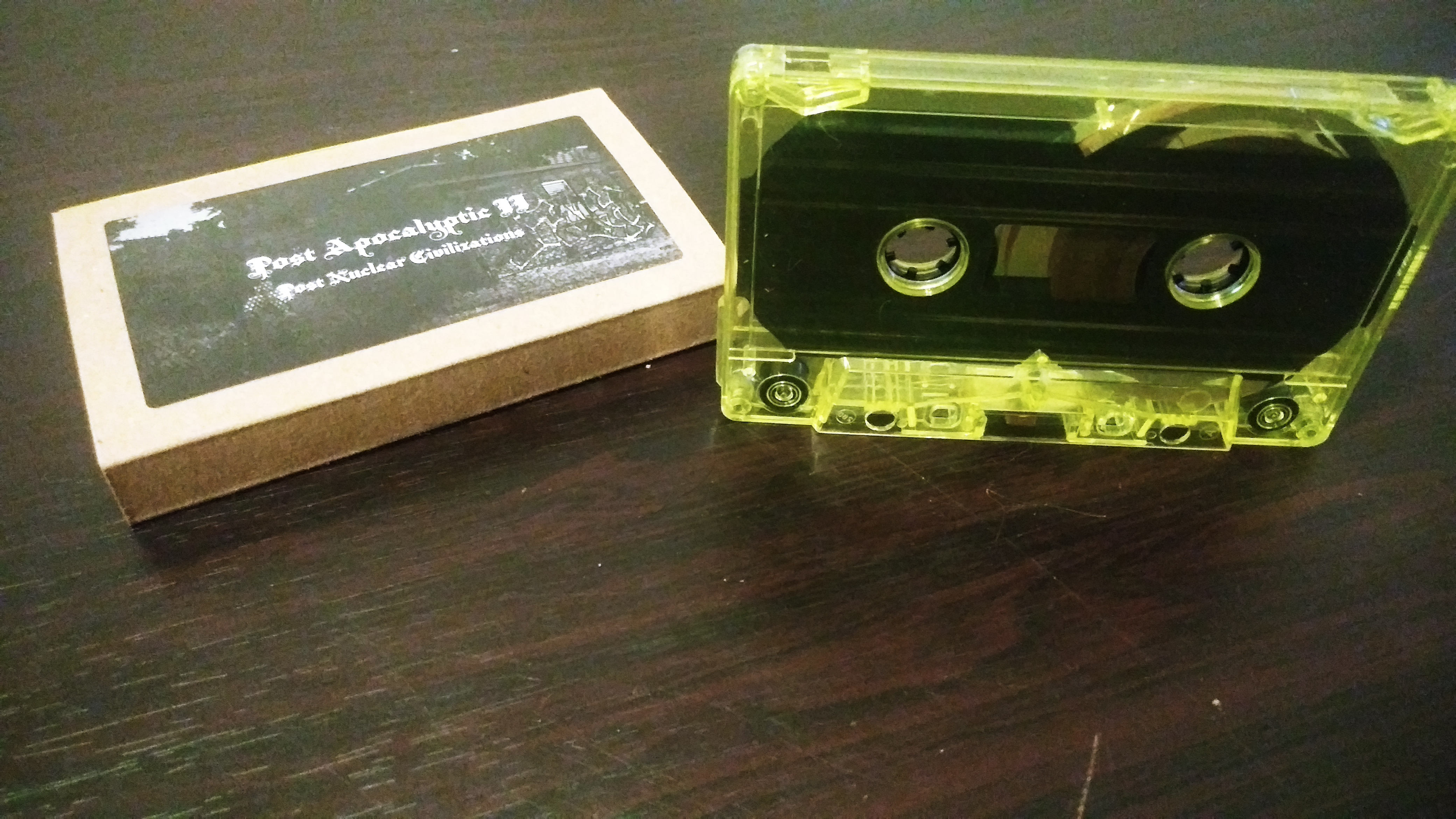 Post Apocalyptic 2 is the sequel to the Post Nuclear Compilation that has been released a year ago , this time I've decided to release all of the compilation on Cassette tape. The main themes in this compilation is to decribe how life is in a Post Apocalyptic scenario after the Earth was bombarded with nuclear bombs on all of it's surface. This is the story of the survivors , the regrowth and the reconstruction after the war. The yellow tape has all of the Ambient artists on it , with different music on both sides, the red tape has all of the Noise artists on Side A. The overall compilation varies from Ambient , Soundscape , Drone Music to Harsh Noise and other experimental styles. The package includes the 2 tapes and a Brochure that has the track listings and some post apocalyptic artwork ! Copies are numbered , limited edition of 30 !