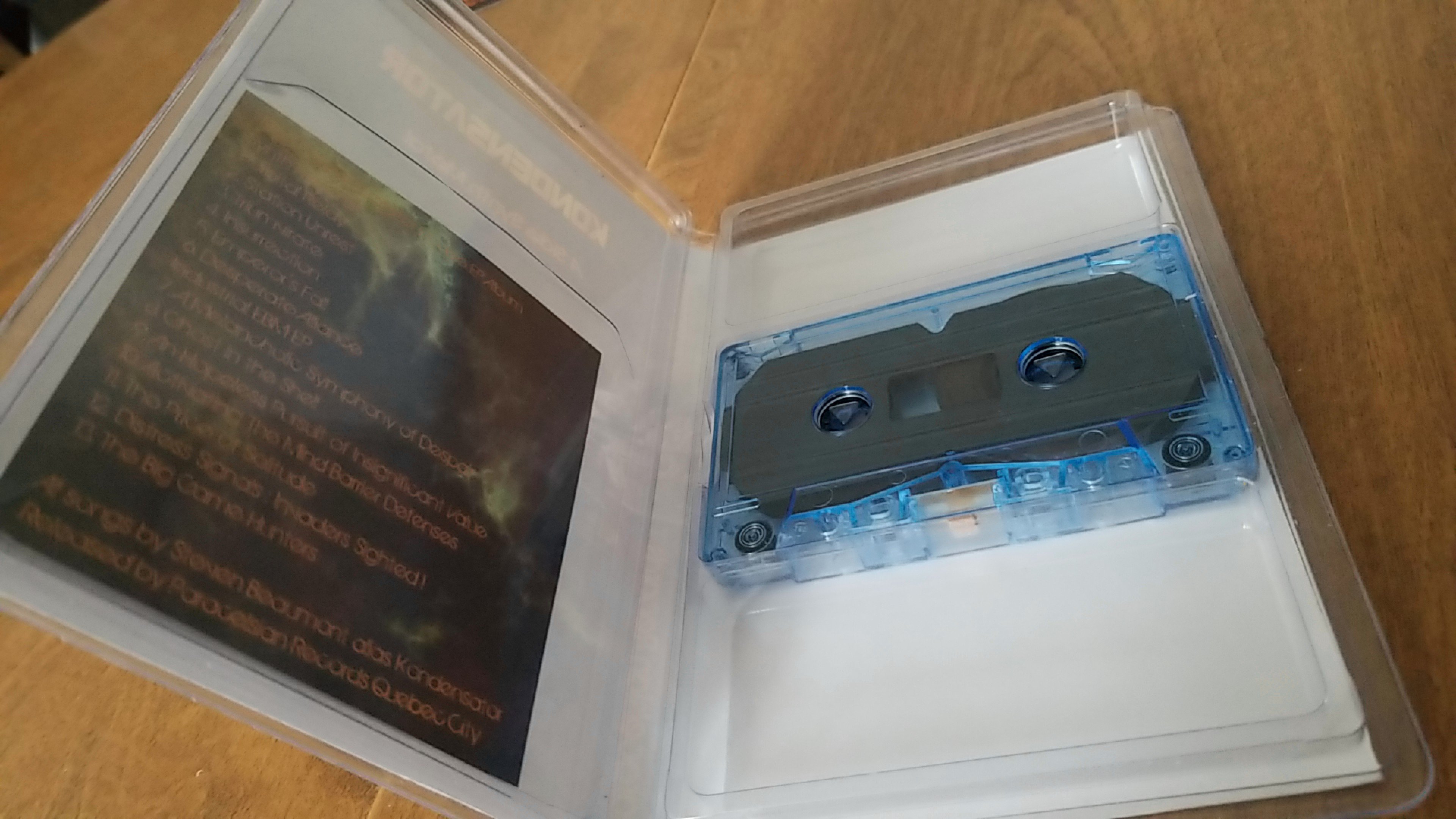 My best release to date, this release is what I hoped my previous EP would have sounded like, nevertheless the previous EP was the prototype leading to the creation of this album ! A bunch of new stuff has been used for this album , sounds like nothing I've ever done before. The Synth Metal EP is Metal music made with Synthesizers , inspired from Prog Metal with a very Psychedelic influence. The Industrial EBM EP is similar in style to what I've been doing as Kondensator , the major difference being that everything is better , better sounding beats , better sounding synths and still keeping the essence of what Kondensator is. Very dark but also very psychedelic and mysterious. Comes in clear Cassette Albums , Ferro Grade Transparent Blue Tapes , with the Starship artwork and insert card with track listing.