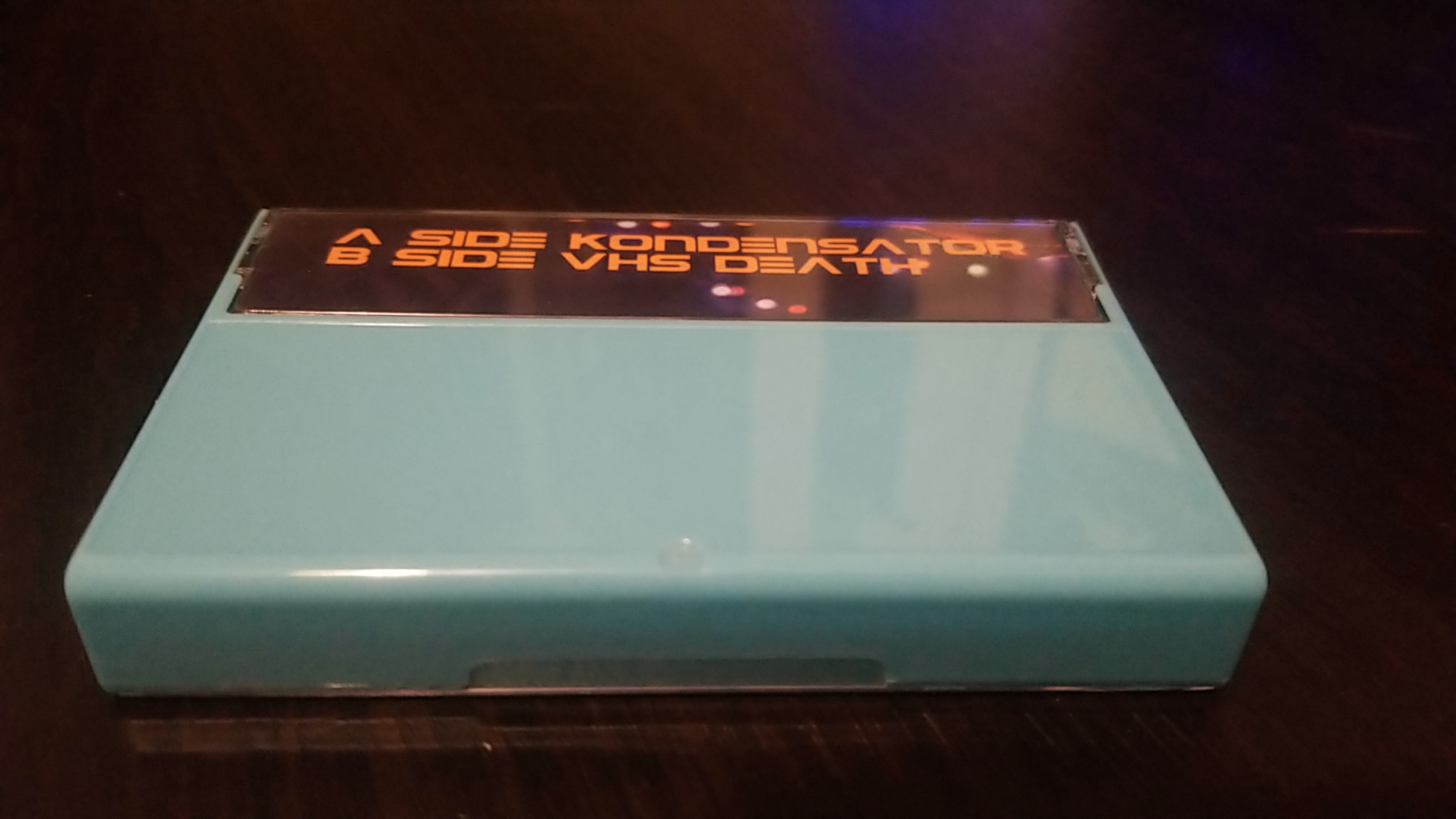 New Split Release with Kondensator and VHS_Death , new 22 minutes single track from Kondensator and re-release on tape of the Psychoplasm EP from VHS_Death. It is Kondensator's first venture into Synthwave , it could be considered as the sequel to the previous album "The Interstellar Orbiter".The song goes from Ambient to Synthwave , a lot of inspiration for this song comes from the Dark Matter tv series Soundtrack and also from all the Synthwave artists I have been listening to over the last year! I'm proud to have my friend VHS_Death back with me on this brand new release , with her cool Darkwave music , her new EP sounds phenomenal ! The new EP has some really nice beats to headbang and dance vigorously to ! These beautiful purple tapes comes in turquoise cases with the Neon artwork , hand numbered and signed !