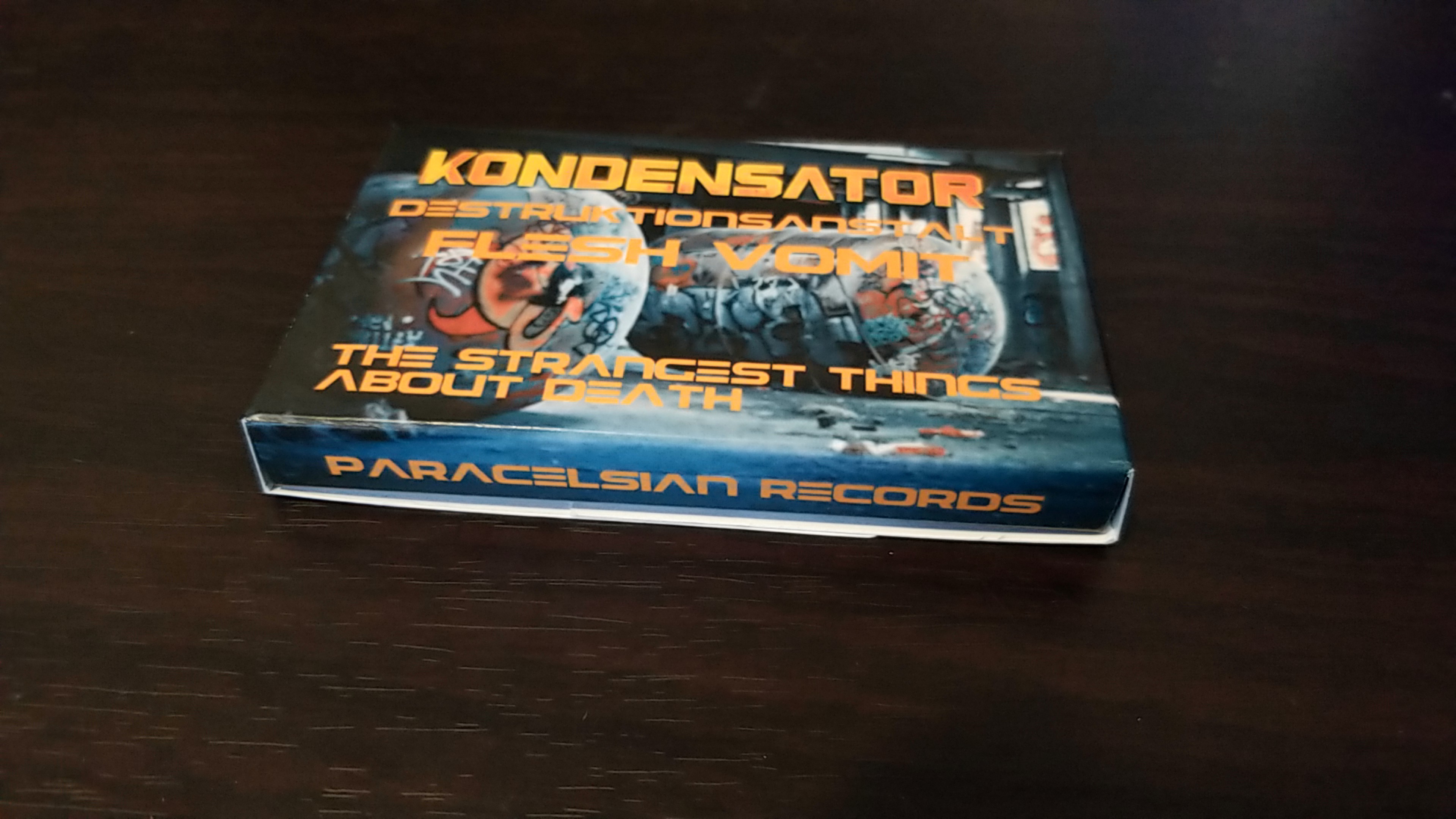 The Strangest Things About Death album by Kondensator , split with Flesh Vomit & Destruktionsanstalt on Side B plus a bonus song at the end from Kondensator ! This is the new beginnings of the Kondensator project ,going towards the Noise Ambient side of things , using only Analog , Semi-Modular & Modular Synthesizers ! A lot of different influences have contributed to the inspiration for this album , most notably : Stranger Things. There's an inherent darkness coming from the sounds of this album , the darkest Paracelsian release to date !